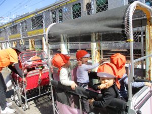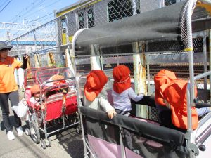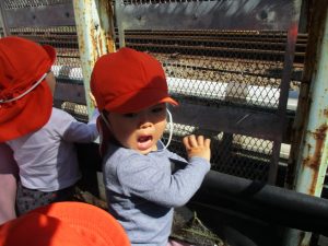 0.1歳児のお友達は久しぶりに津田沼駅まで電車を見に来ました。