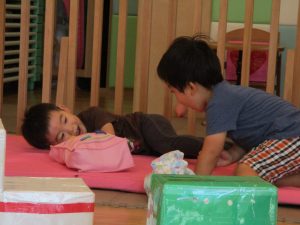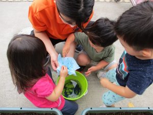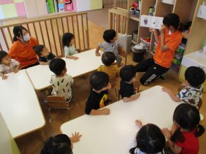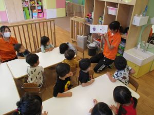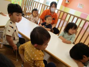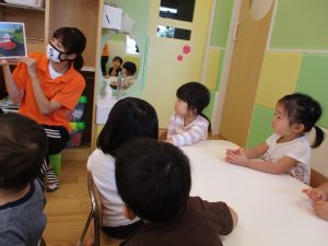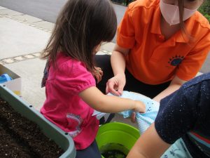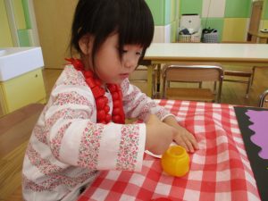 「お布団かけるね♪」や「あれ?トマトじゃないの?」と各々が感じた事を楽しそうに先生達に伝えていました。