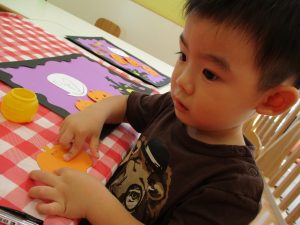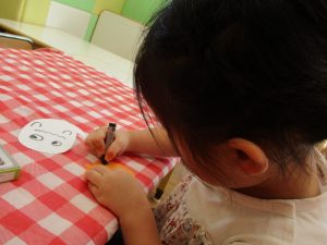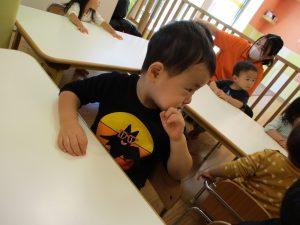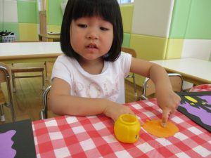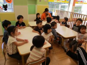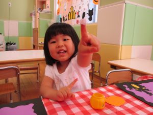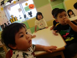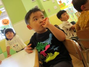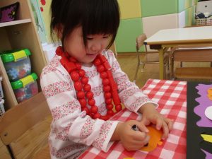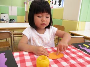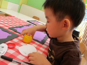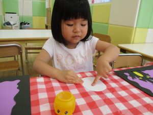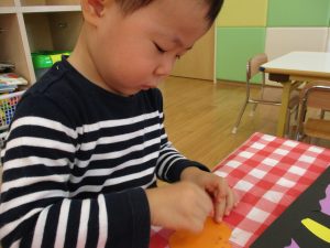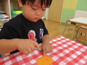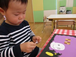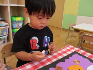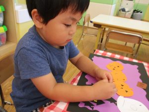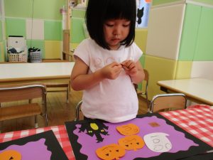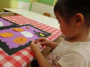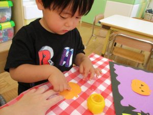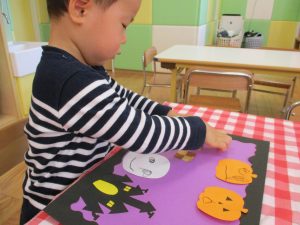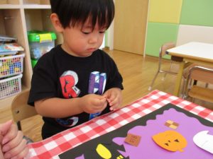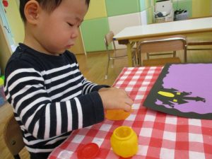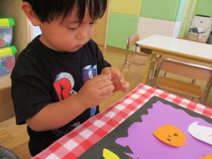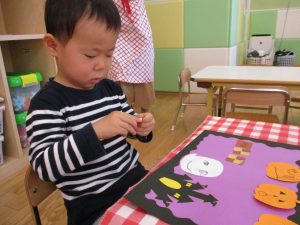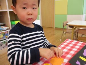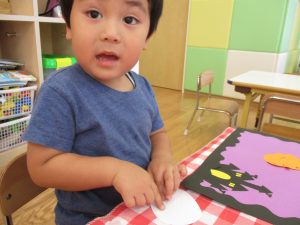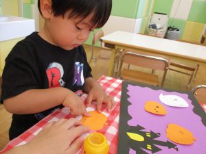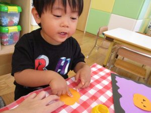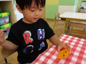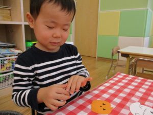 本日は2歳児さんは室内にてハロウィン製作を楽しみました。