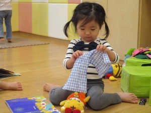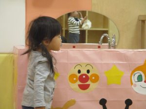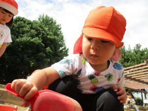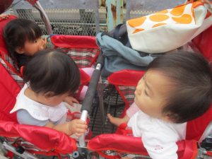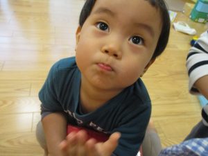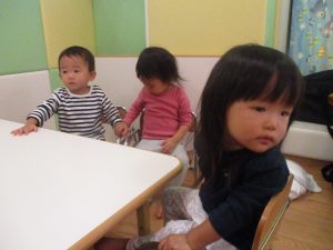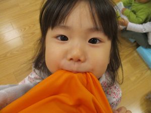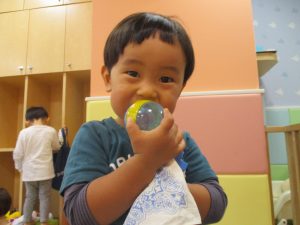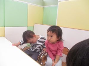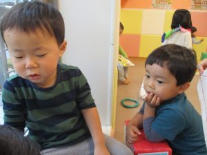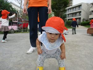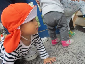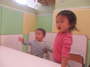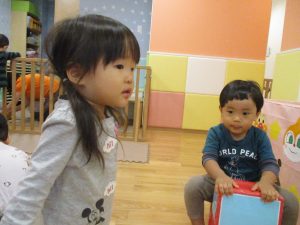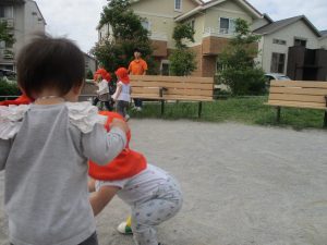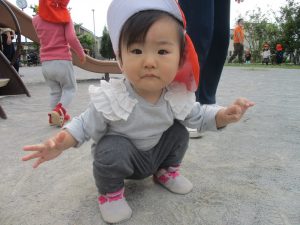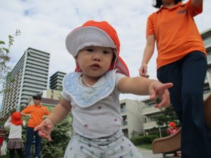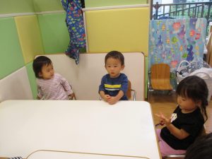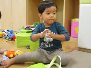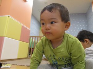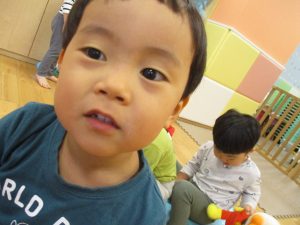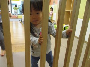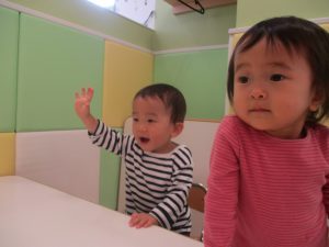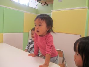 1歳児のお友達も少しずつ他のお友達に興味や関心が出始め、関わり合いの走りが垣間見れました。