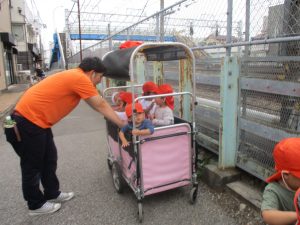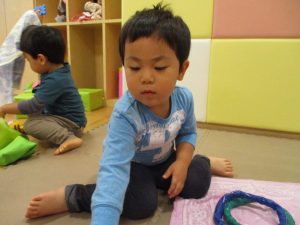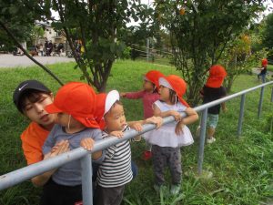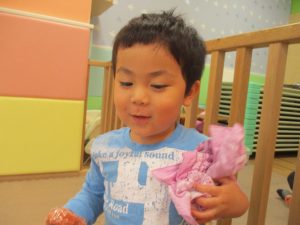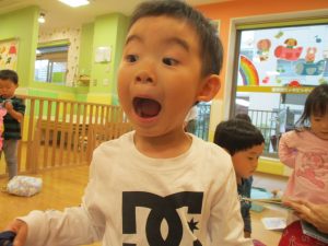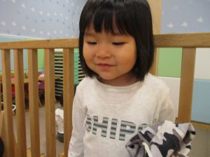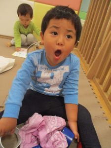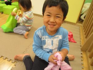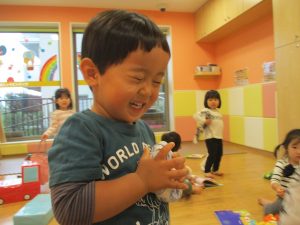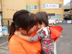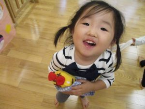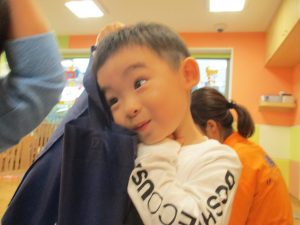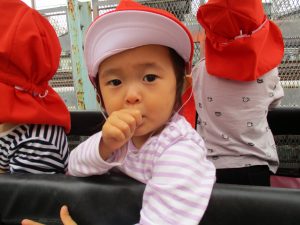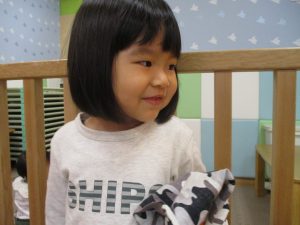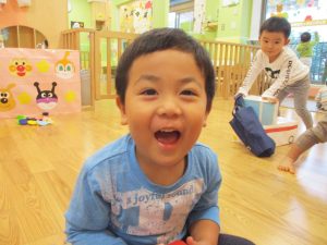 週明けと言う事もあり「ママがいいの」と甘える姿も多くありましたが、先生に抱っこされると気持ちが少しずつ落ち着き保育園に戻る頃には笑顔で過ごす事が出来ました♪