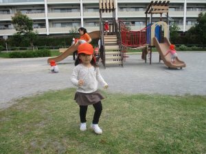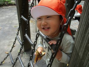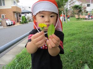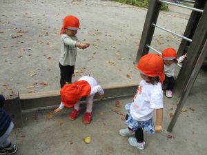 先生達と一緒に固定遊具で体を動かして遊んだり、落ち葉拾いを楽しみました!