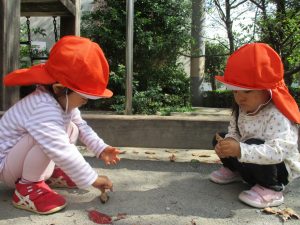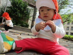 0.1歳児のお友達は園周辺のさくら公園にて過ごしました。