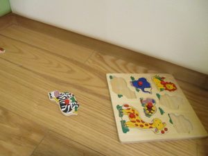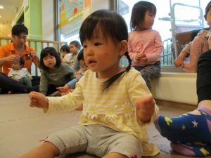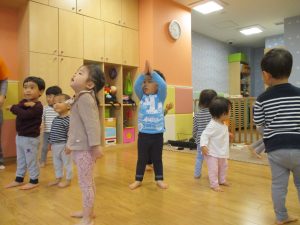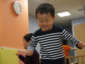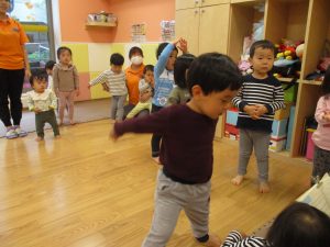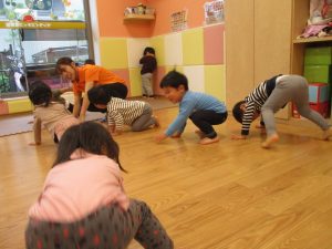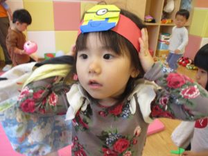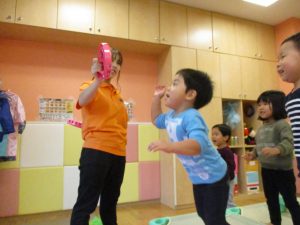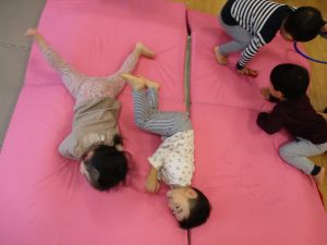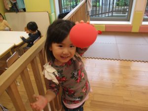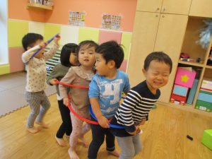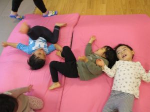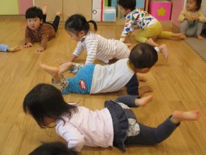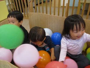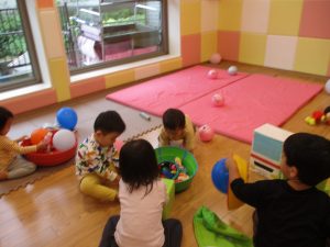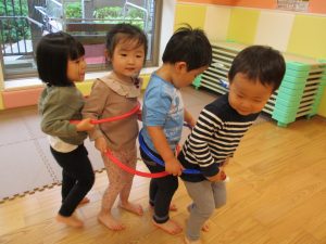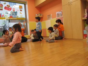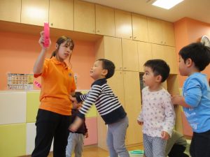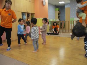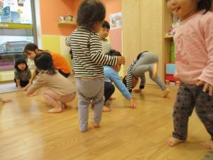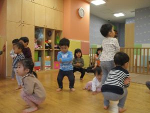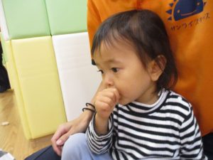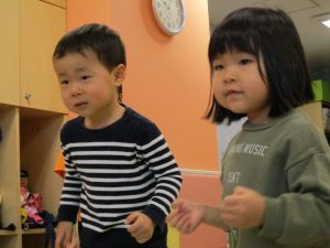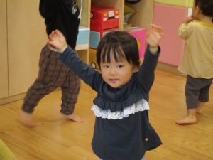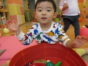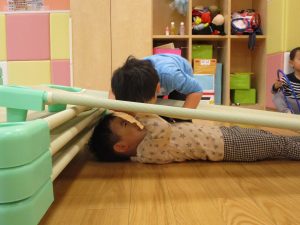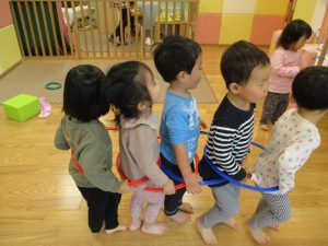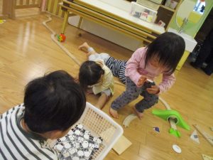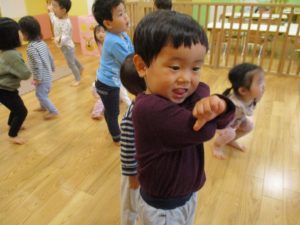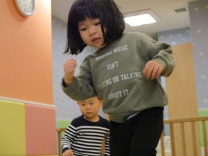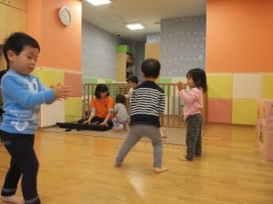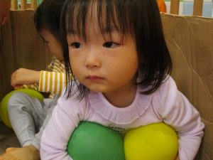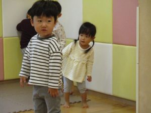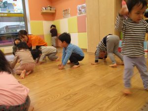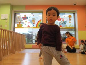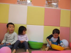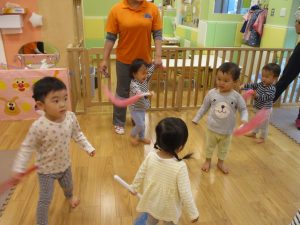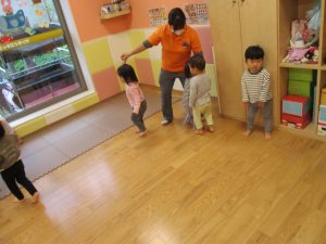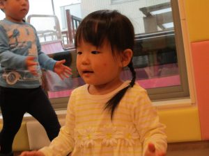雨天の日の室内活動は2歳児さんにとったら少し物足りないようですね。