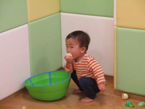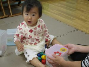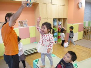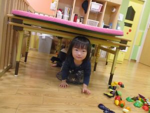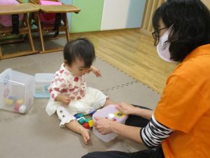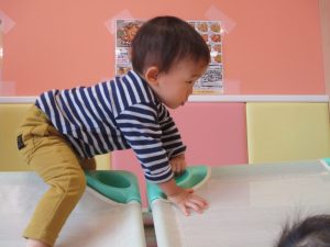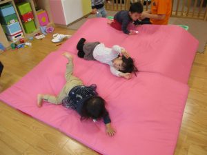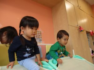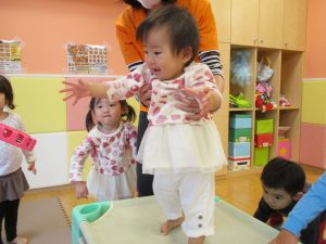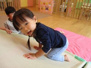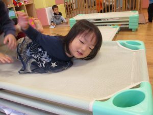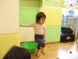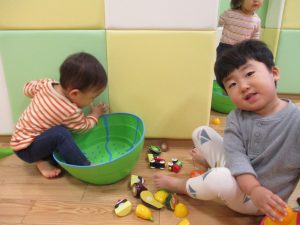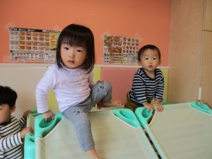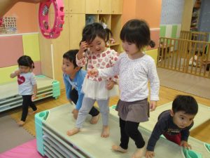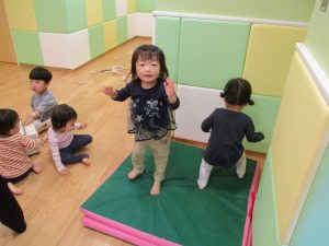 特に2歳児さんは夏を乗り越えたあたりから体力がとてもついてきた為、室内での過ごし方、遊び方にバリエーションを増やし少しでも多く体を動かせるように配慮しております。
