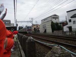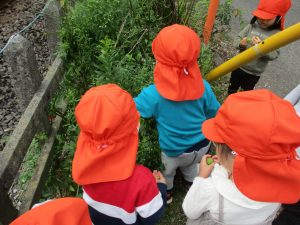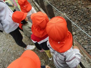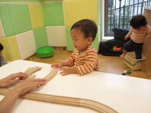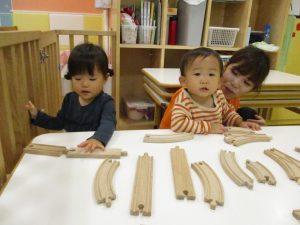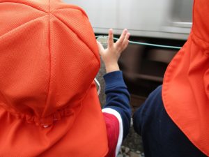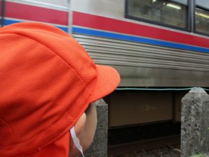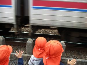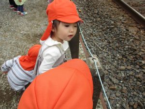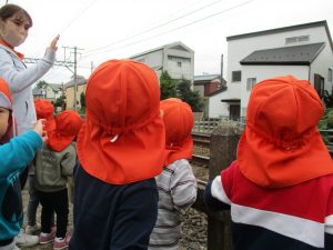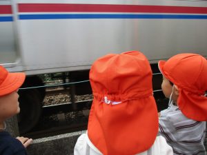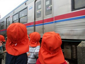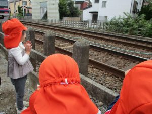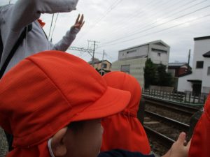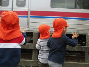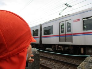 0.1歳児のお友達は室内で過ごし、2歳児のお友達は谷津駅周辺まで京成線を見に行きました。