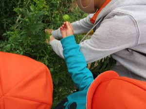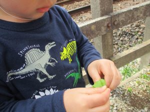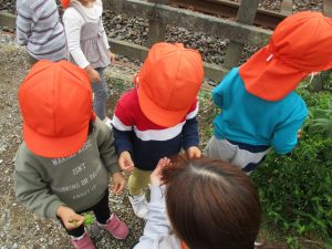谷津駅周辺では間近で電車を見たり、木の実拾いに夢中でした。