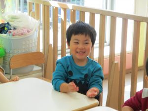 「みんなのお家にも同じのある?」との先生の問いに「うん」と頷く姿がなんとも可愛いです♪