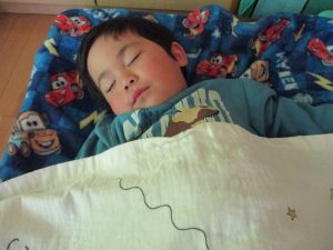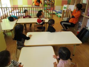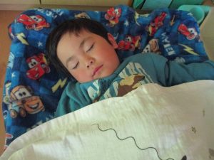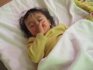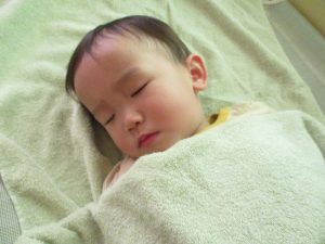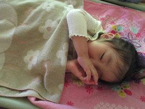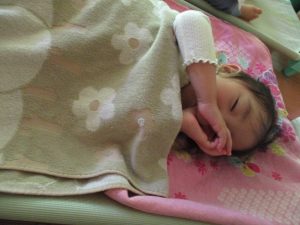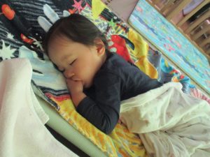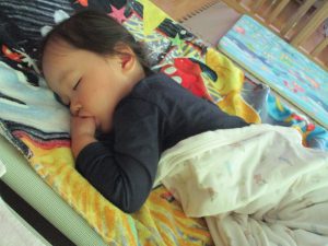 2歳児さんも活動量を増やしたことで、気持ち良く入眠出来る子が増えて参りました。