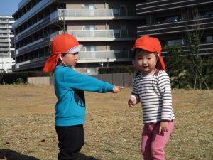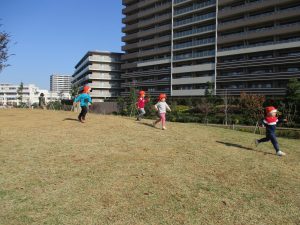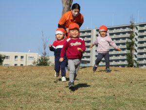 なんと「鬼決め」を知っているお子様がおり、その流れで初めての「鬼ごっこ」に挑戦致しました♪
