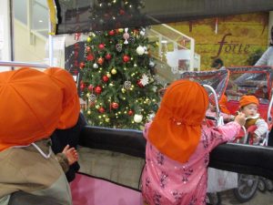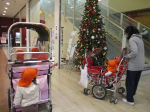 0.1歳児のお友達は園周辺のモールにクリスマスのイルミネーションを見に行きました!