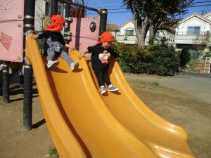 ローラー滑り台を皆で堪能したり、木の実集めを楽しみ秋を存分に感じました。