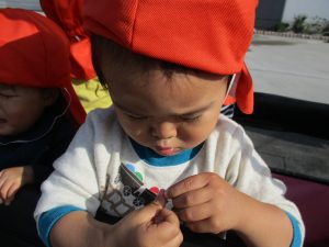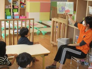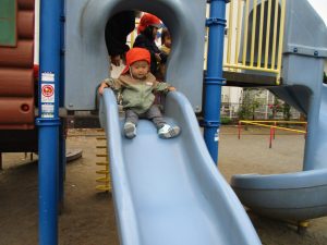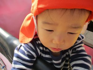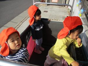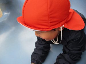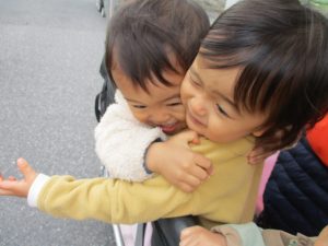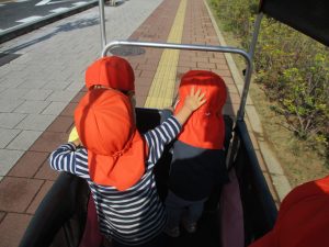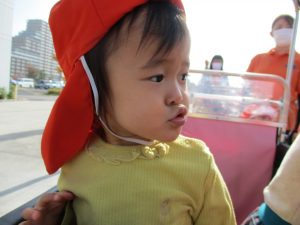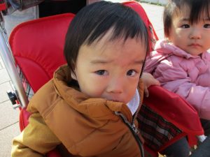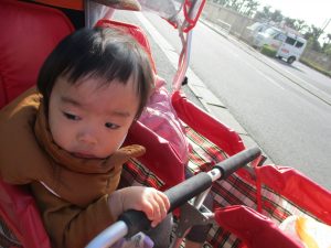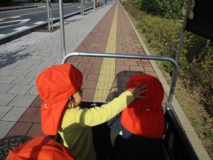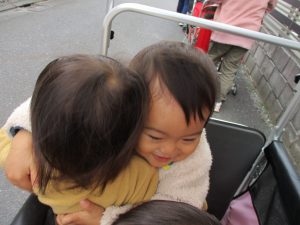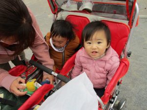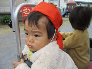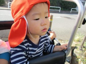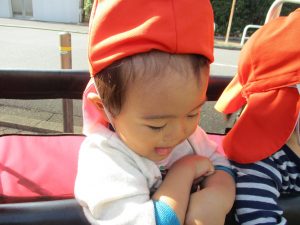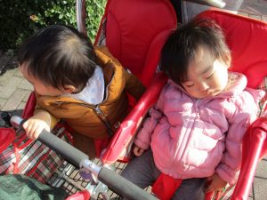 0歳児のお友達は戸外が気持ち良くて、散歩中にスヤスヤと可愛く眠る姿もありました。