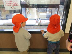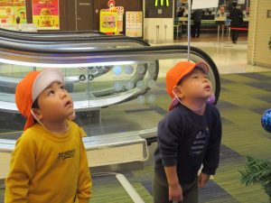 2歳児のお友達は園周辺のモールの中を散歩致しました。