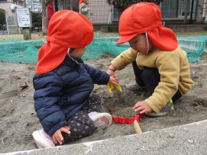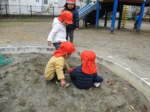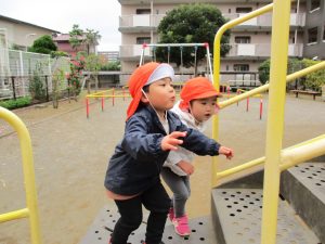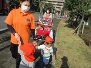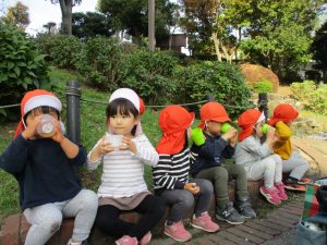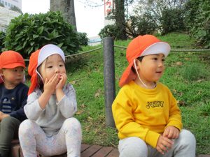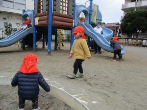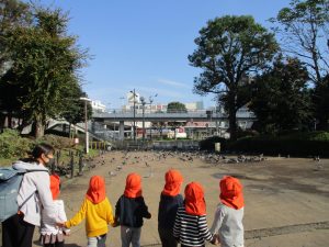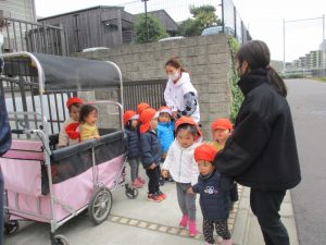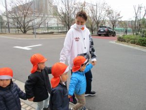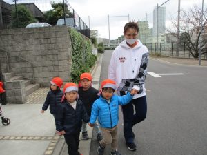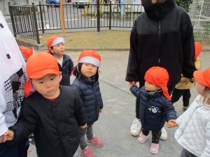 子ども達も先生達も気温が低い中の戸外散歩、よく頑張りました!