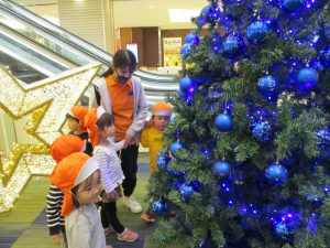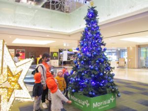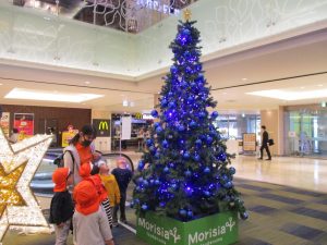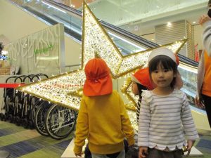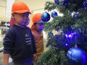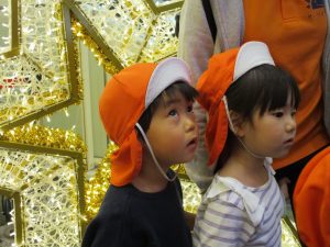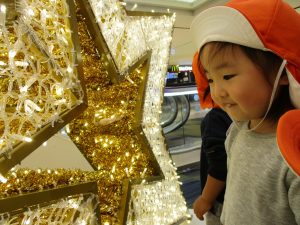 大きなクリスマスのイルミネーションに圧倒されながらも目を輝かせておりました♪