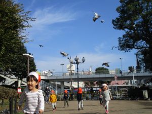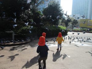 駅前の広場では鳩を見たり、水分補給を行ってまったりと過ごしました!