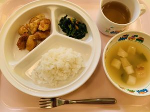 ご飯 味噌汁 豆腐とツナのおとし揚げ ほうれん草のごま和え