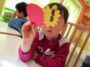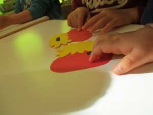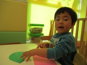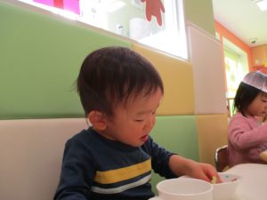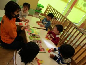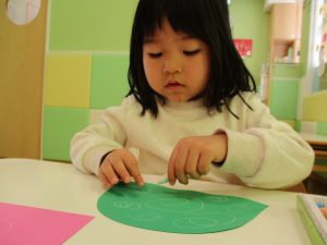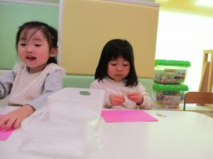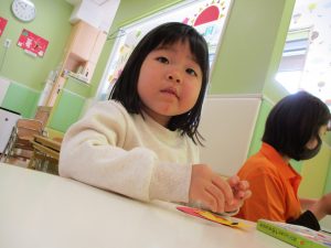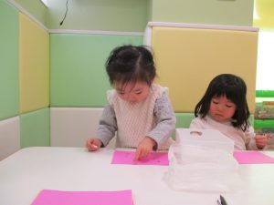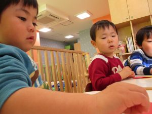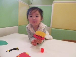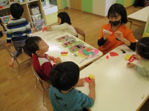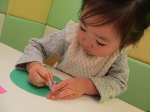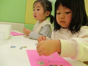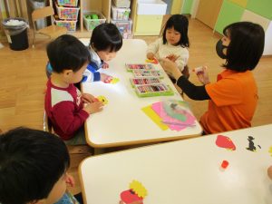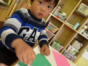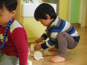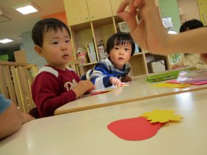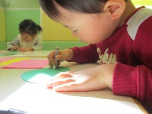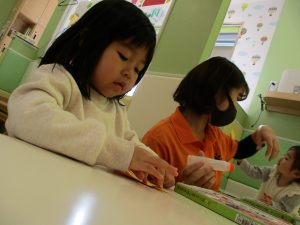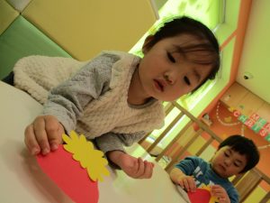 2歳児のお友達はお部屋で1月の製作を楽しみました♪