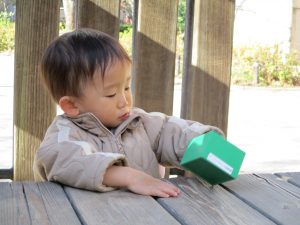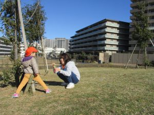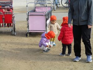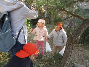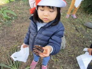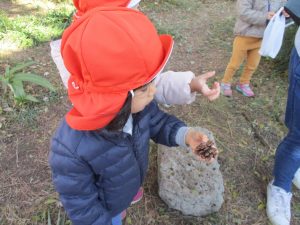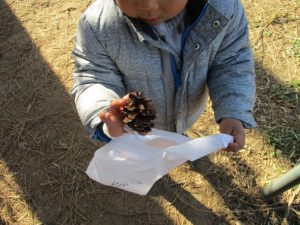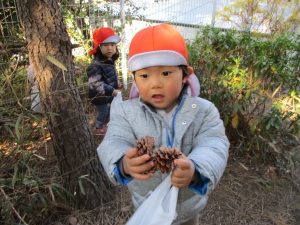 2歳児さんは谷津コミュニティーセンターにて松ぼっくりをたくさん拾い集めました!
