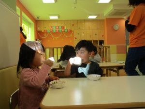 保育園でもクリスマスの絵本を皆で読んだり、クリスマスの歌を皆で歌い雰囲気を存分に味わいました♪