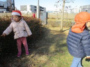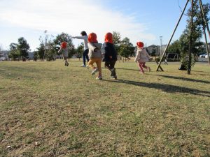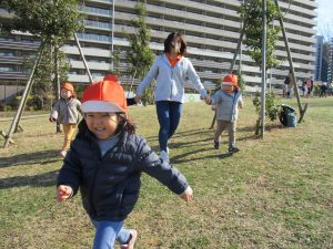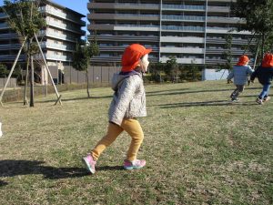 2歳児さんもこの時期になると先生顔負けの足の速さや体力がついてきており、成長を強く感じます。