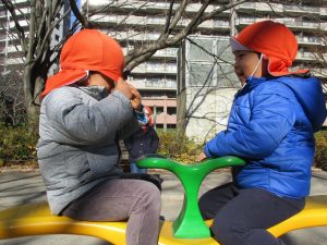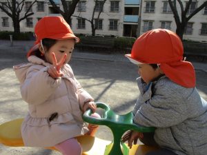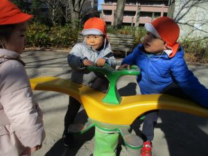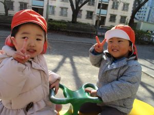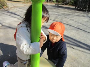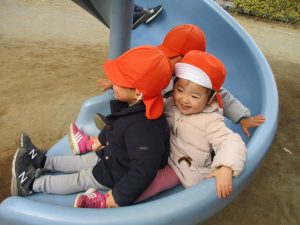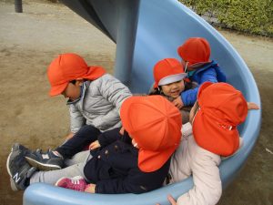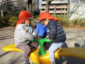 固定遊具を使ったり広場でのかけっこを存分に楽しみ、たくさん体を動かし気持ちの良いスタートが切れたように感じます!