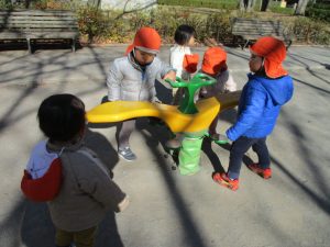固定遊具を使いましたがダイナミックに遊びながらも順番もしっかりと守り、遊び方が本当にお兄さんお姉さんになって参りました。