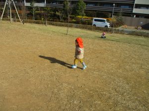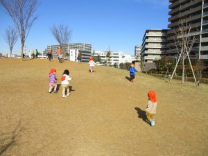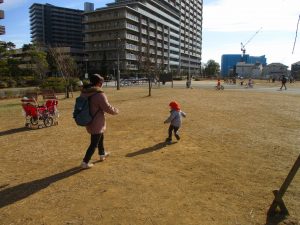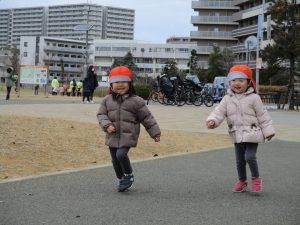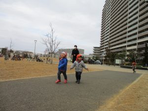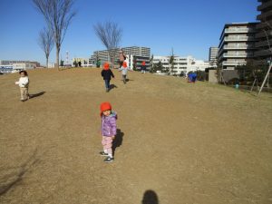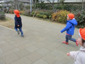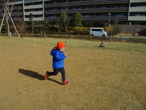 2歳児さんは防災公園にてかけっこを楽しみ思い切り体を動かしました!
