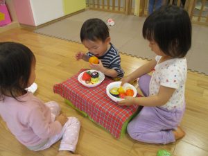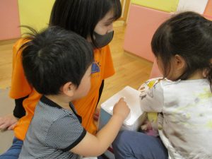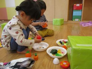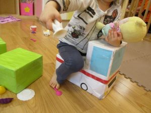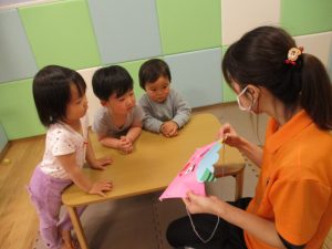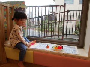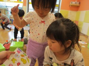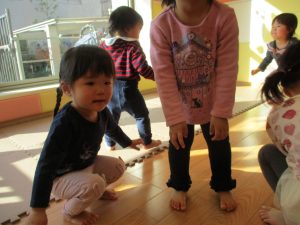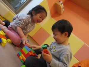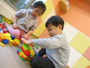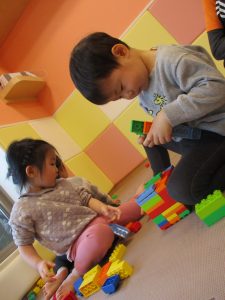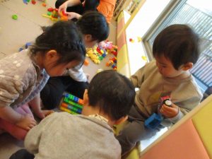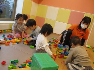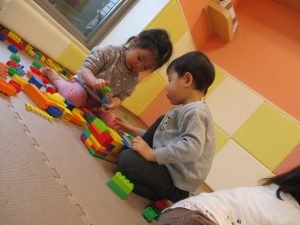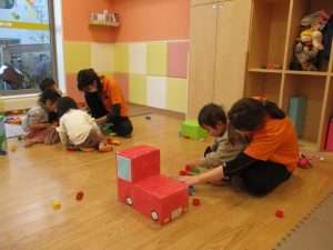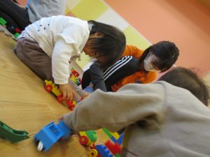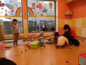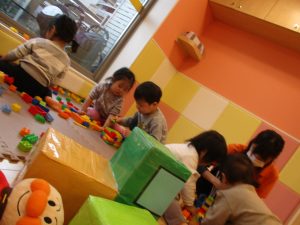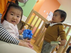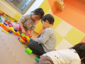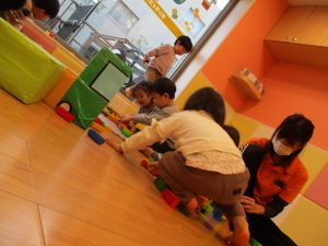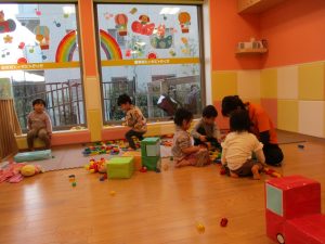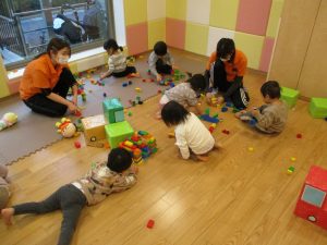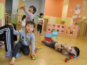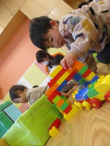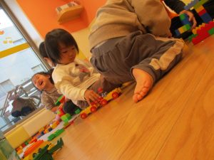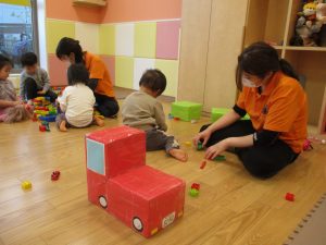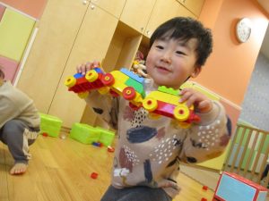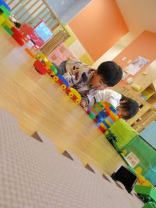 本日はレゴブロックとプラレールが大人気の様で、電車や陸橋を作り電車を走らせながら見た手遊びを楽しんでおりました!