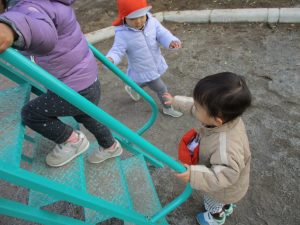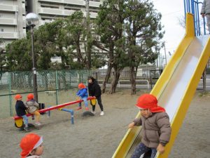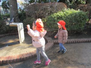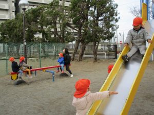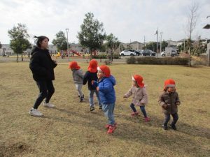 2歳児さんは防災公園にてたくさん体を動かしました!