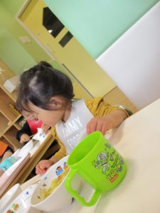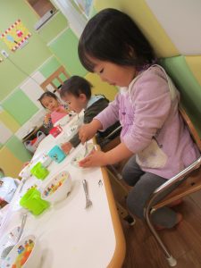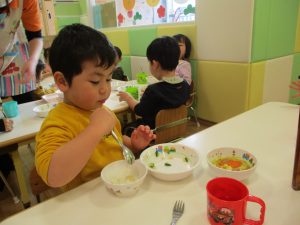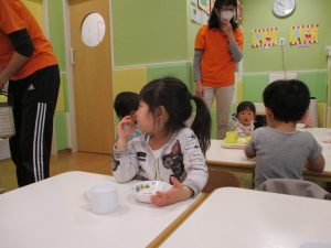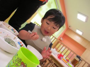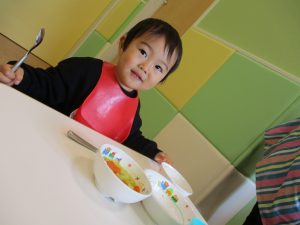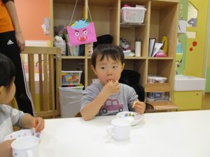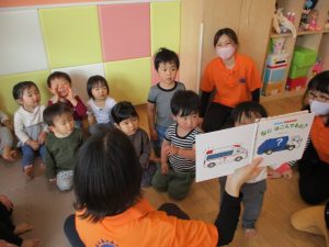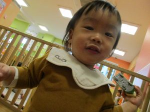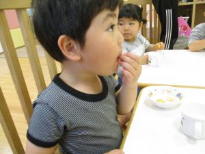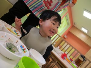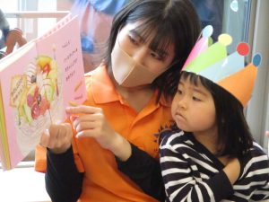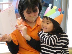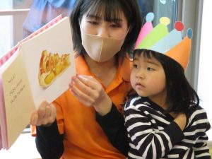 少し照れている様子でしたが担任の先生に絵本を読んでもらったり皆から誕生日の歌を歌ってもらい、気が付くと飛びっきりの笑顔になっていました。