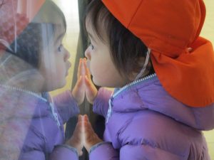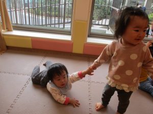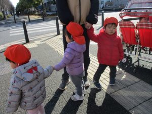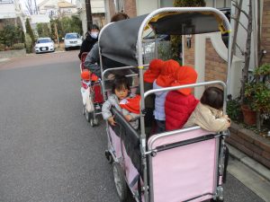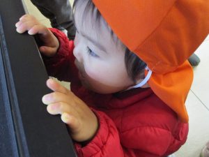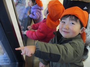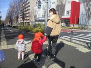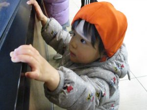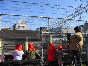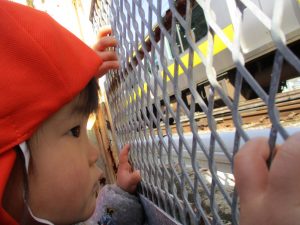 0.1歳児のお友達は園周辺のモール内のペットショップまで足を運んだり、津田沼駅まで電車を見に行きました!