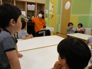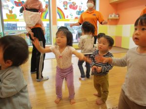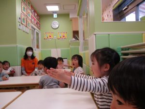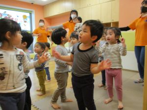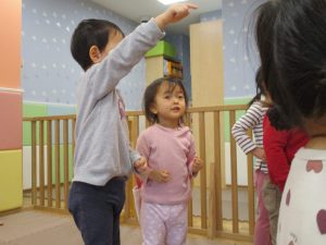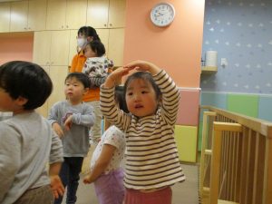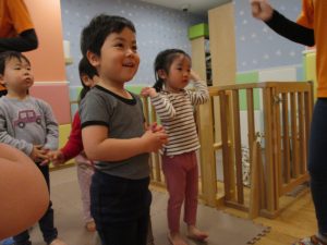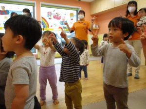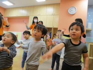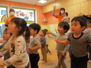 先生の歌声に合わせて楽しそうに体を動かしていました♪