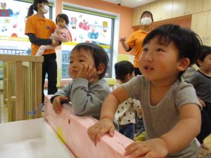 物珍しい遊具があり子ども達は遊ぶ前から興味津々で、何度も繰り返し遊び楽しそうに過ごしておりました。