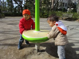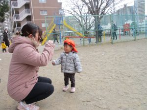 0.1歳児のお友達は園裏の6丁目公園まで遊びに行きました!