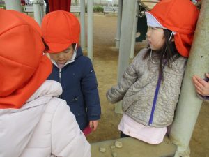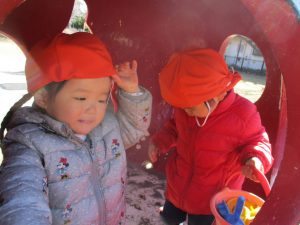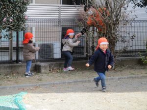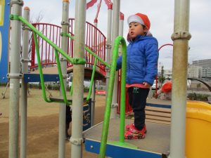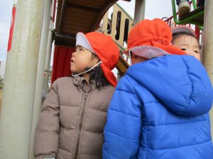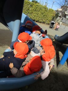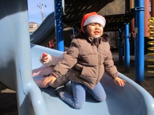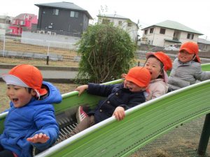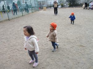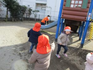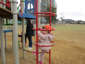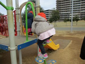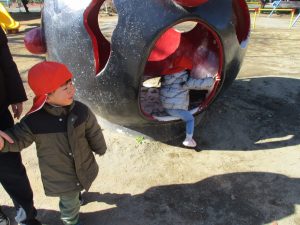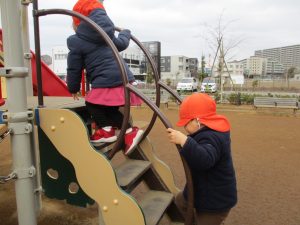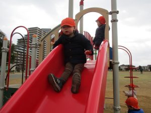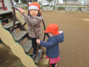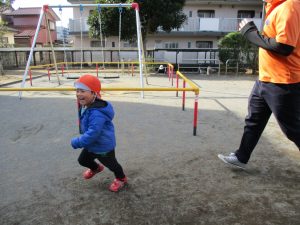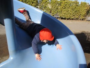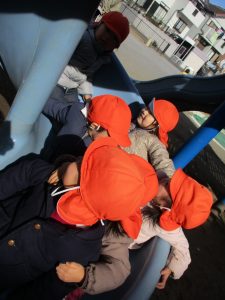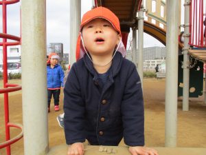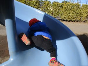 週末とは打って変わって曇り空の為気温もそこまで上がらず、また風も予想以上に強く冬本番の寒さでしたが、寒さを吹き飛ばす程思い切り体を動かして遊んでいました。