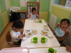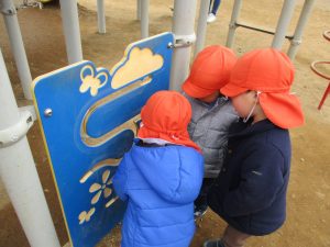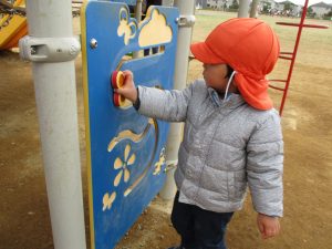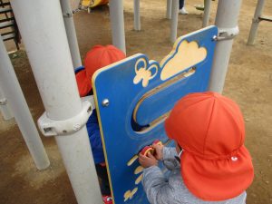固定遊具で体を動かしたり砂場でのままごと遊びを楽しみました。
