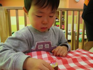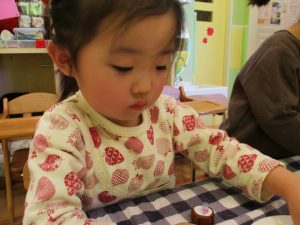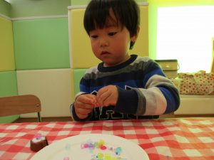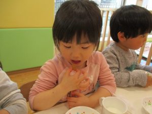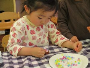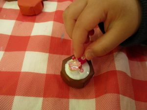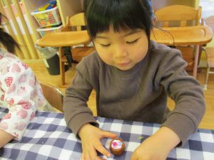 細かな指先の動きもだんだんと上手になり、とても美味しそうな1口チョコが完成致しました。