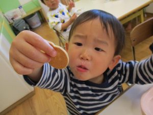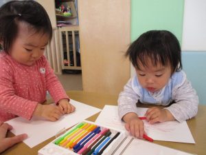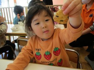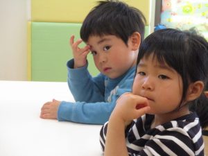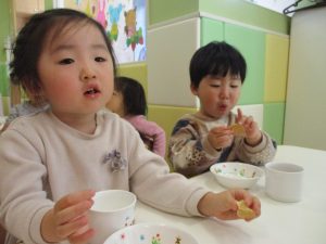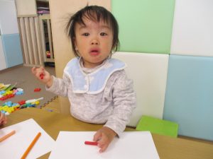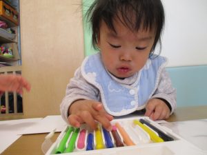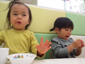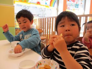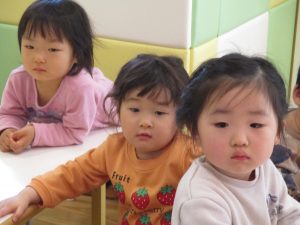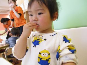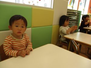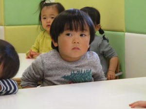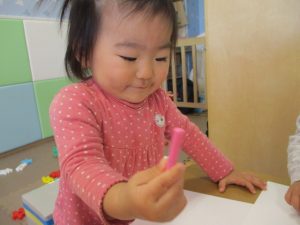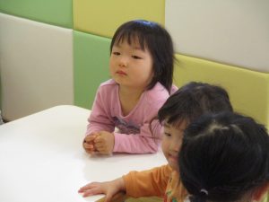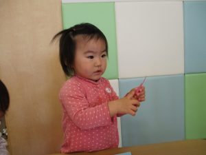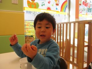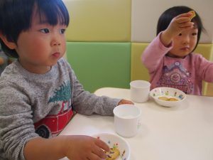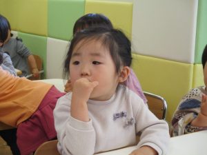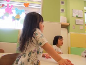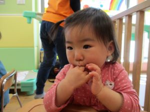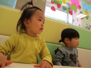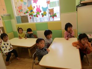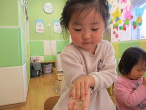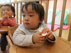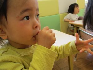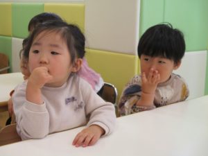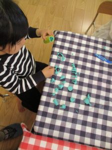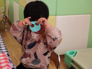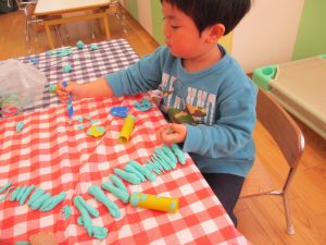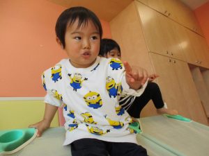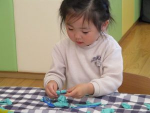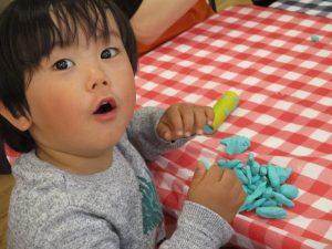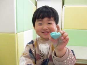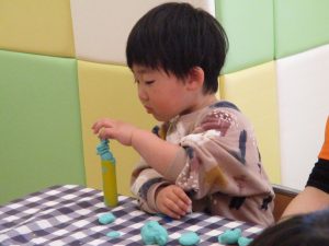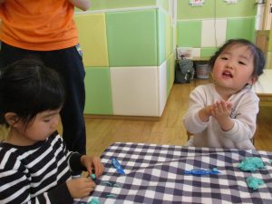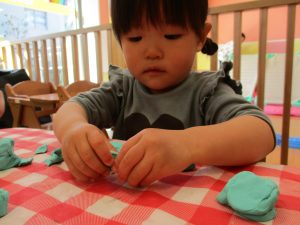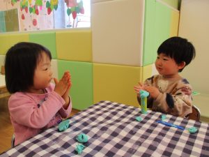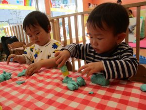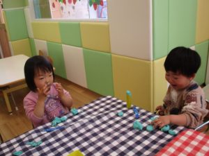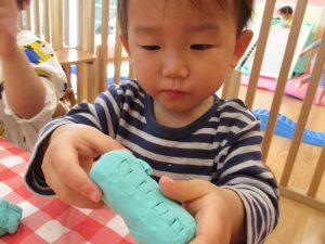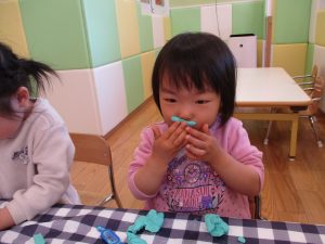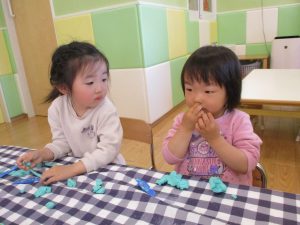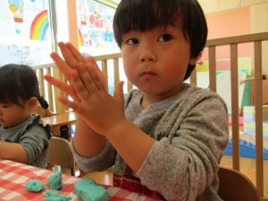 2歳児保育室では粘土遊びを行いました!