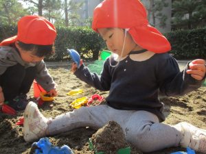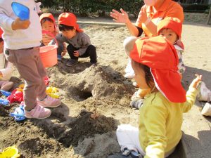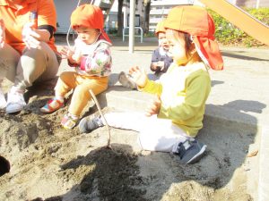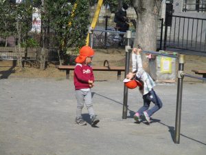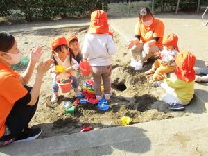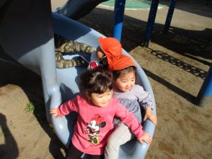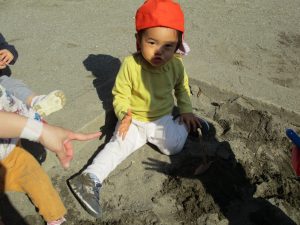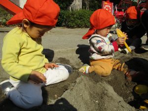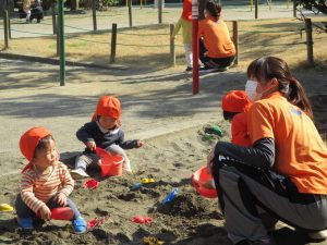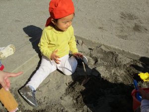 上着いらずの暖かい気候の中、固定遊具や砂場でたくさん遊びました。
