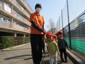 2歳児クラスのお友達は5丁目公園まで遊びに行きました!