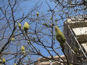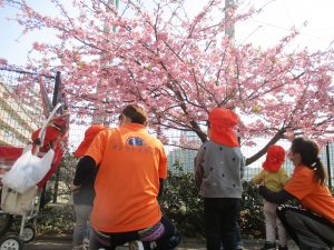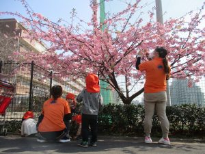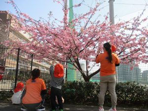 園前の中学校の校庭には早咲きの桜が既に咲いております!