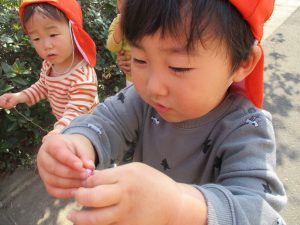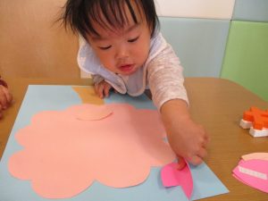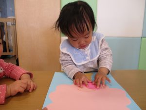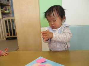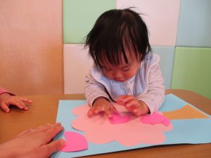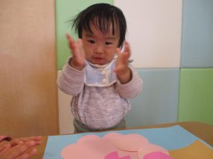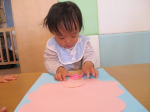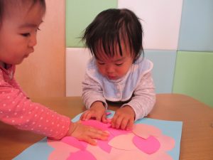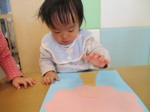 0歳児のお友達は春の製作を楽しんでおります♪