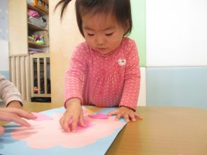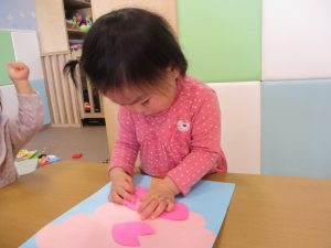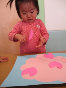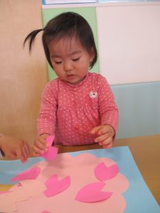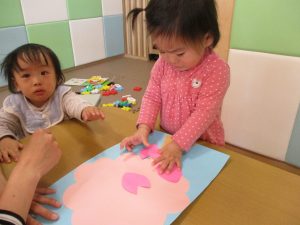ペタペタと桜の花びらを貼ったり、クーピーを使ってお絵描きも楽しんでおります。