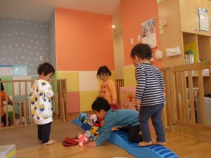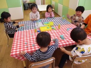 2月に入ってから夕方の合同保育の時間や、室内で遊ぶ際は積極的に取り入れております。