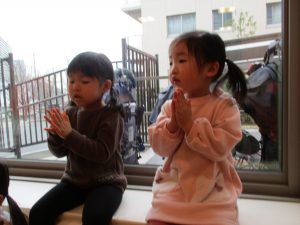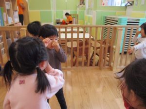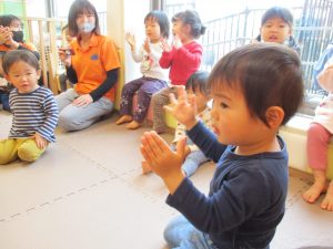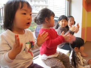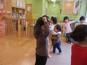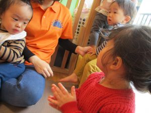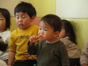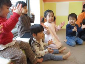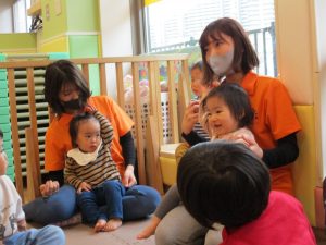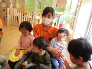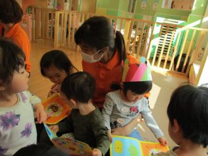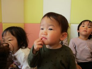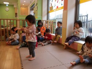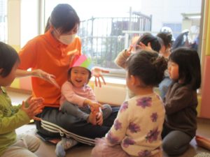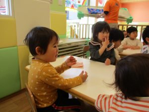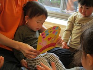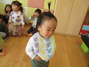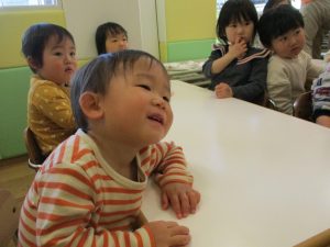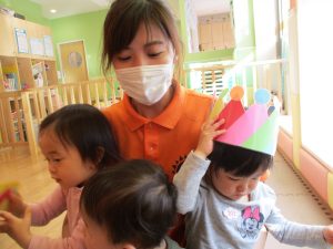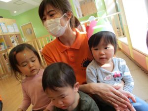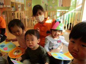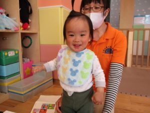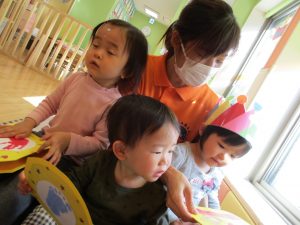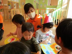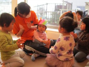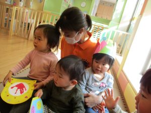 2月は1歳児のお友達が3人お誕生日を迎えました!