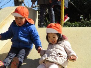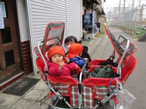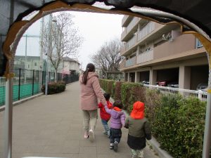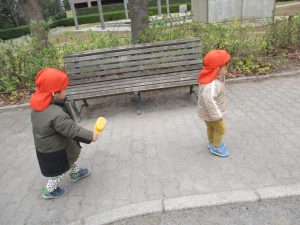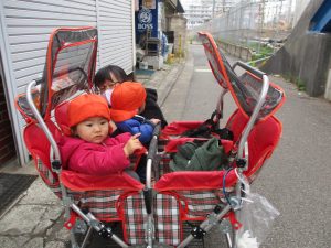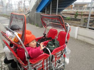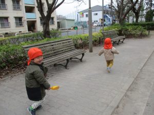 0.1歳児のお友達は津田沼駅~さくら公園と言った谷津園王道コースで戸外散歩を楽しみました!