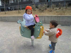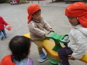 今まで安全面を配慮して使用していなかった遊具を成長に合わせて解禁致しました。