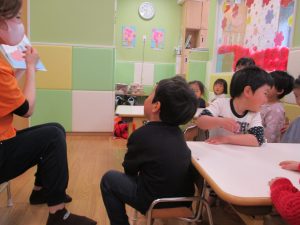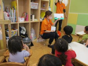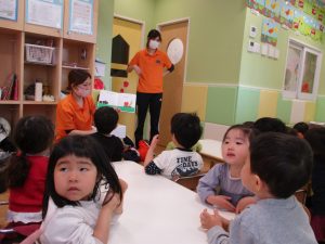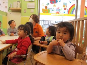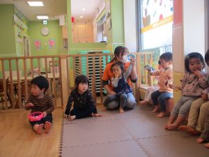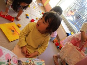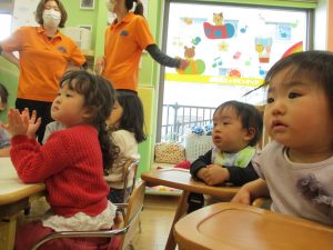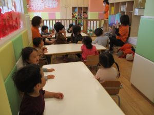 1歳児さんや0歳児さんは「ドッグ!」と先生が言うと「わんわん!」と可愛い反応を示してくれとても微笑ましく思います♪